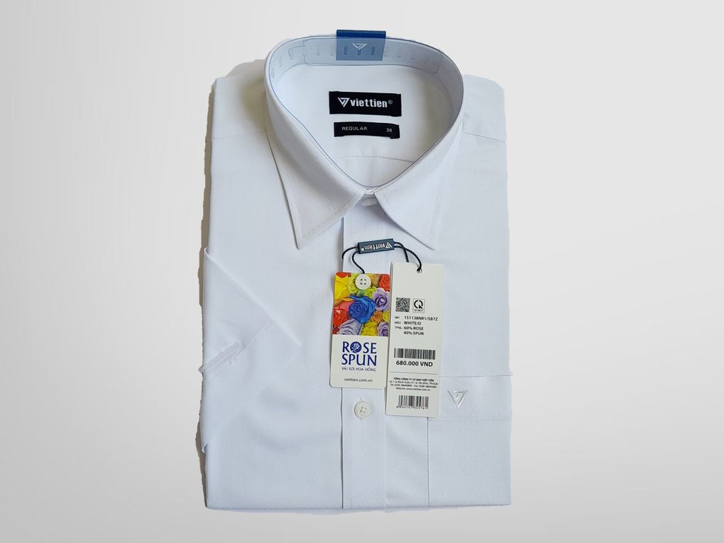 ÁO SƠ MI HOA HỒNG NGẮN TAY - TRẮNG - LAI BẦU