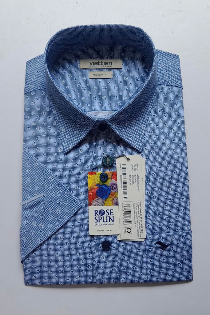 ÁO SƠ MI HOA HỒNG NGẮN TAY - HOA VĂN  - LAI NGANG