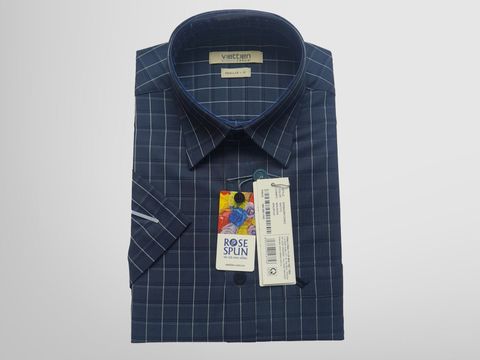 ÁO SƠ MI HOA HỒNG NGẮN TAY - CARO  - LAI NGANG